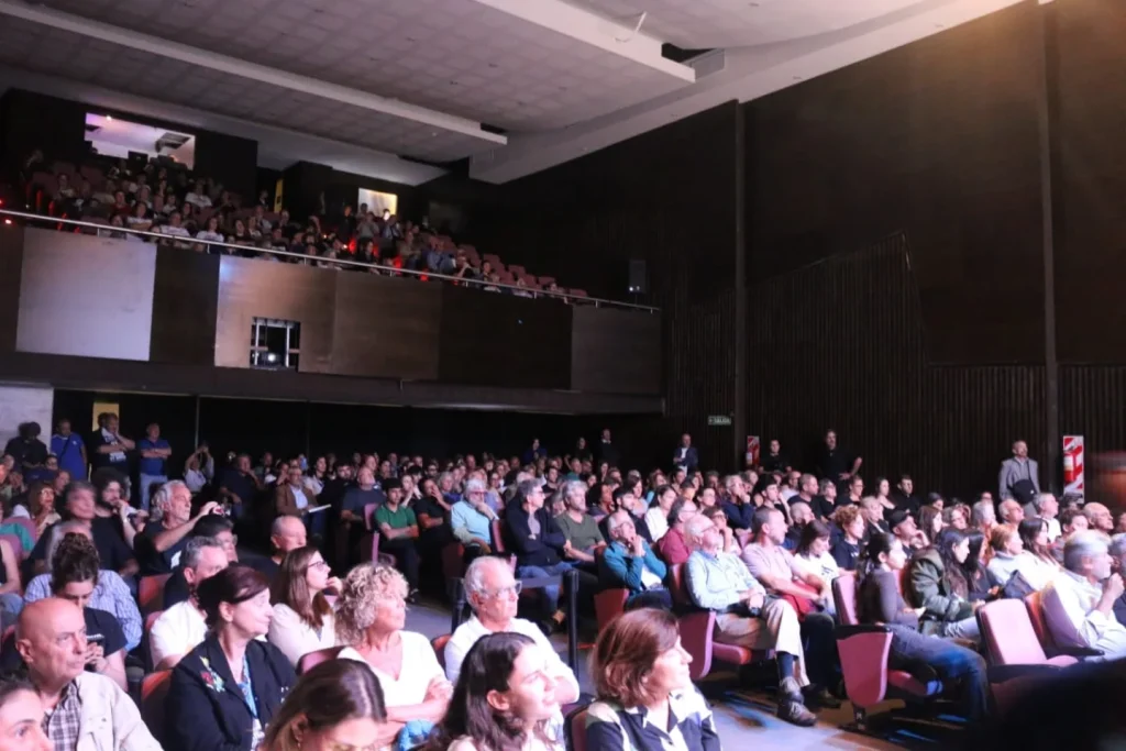 22-3-2026 Tristan Bauer, Carolina Scaglione y Daniel Filmus .Presetan un documental. Foto Enrique Garcia Medina